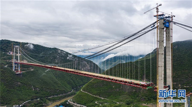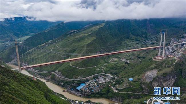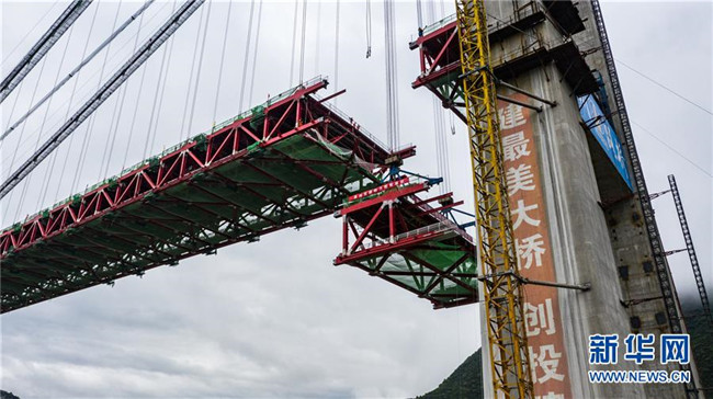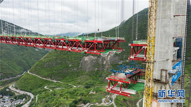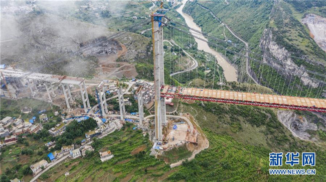 正在拼裝最后一片鋼桁梁的赤水河大橋(5月30日無人機(jī)拍攝)。新華社記者 陶亮 攝