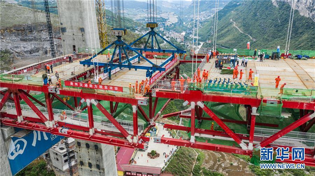 合龍中的江習(xí)古高速公路赤水河大橋(5月30日無人機(jī)拍攝)。 新華社記者 陶亮 攝