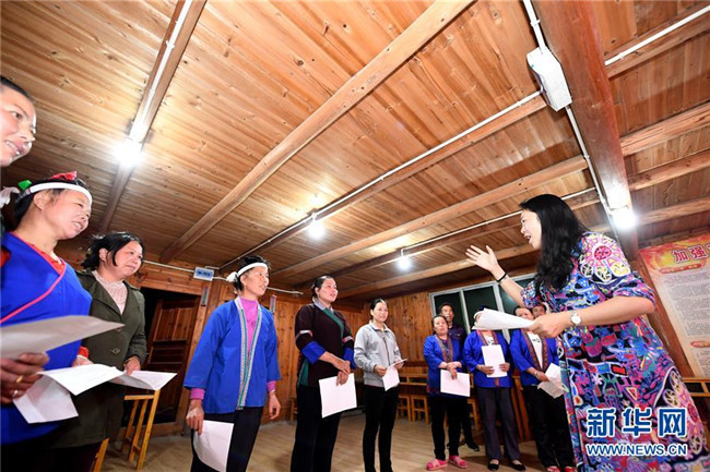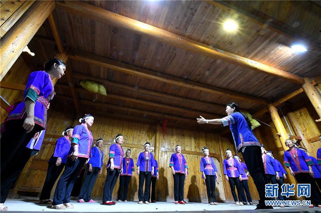 5月27日晚,在廣西柳州市三江侗族自治縣良口鄉(xiāng)燕茶村,吳純娟與村民在戲臺(tái)上排練侗族大歌。 今年42歲的吳純娟是廣西柳州市三江侗族自治縣文化館的一名文藝輔導(dǎo)員。她從小喜歡唱歌,工作后接觸并喜歡上侗族大歌,2005年起專門拜師學(xué)唱侗族大歌。如今,侗族大歌成為她主要輔導(dǎo)和傳承的音樂之一。今年3月中旬,她成為三江縣良口鄉(xiāng)燕茶村一名駐村工作隊(duì)員,侗族大歌是她扶貧的法寶。 燕茶村位于侗鄉(xiāng)大山深處的山腰上,村民們雖然熱愛歌舞,但卻無(wú)人會(huì)唱侗族大歌。吳純娟進(jìn)村后,當(dāng)即在村里開設(shè)了侗族大歌免費(fèi)培訓(xùn)班,利用晚上及其他工作之余的時(shí)間教村民唱侗族大歌,受到村民歡迎。如今,燕茶村專門成立“侗族大歌文藝隊(duì)”,隊(duì)員從一開始的20人迅速發(fā)展到33人。村部會(huì)議室、村里的戲臺(tái)、還有山上的千畝茶園……他們的歌聲幾乎傳遍了燕茶村的每個(gè)角落。 “這段時(shí)間,吳老師還利用休息時(shí)間教學(xué)校老師和學(xué)生唱侗族大歌。”燕茶村燕子小學(xué)老師楊雪連說,學(xué)校里從來沒有音樂老師,吳老師在學(xué)校里開班,師生們學(xué)習(xí)熱情也非常高。 吳純娟說:“每首侗族大歌歌唱的都是自然、勞動(dòng)和愛情之美,傳承民族文化的同時(shí),我更希望激發(fā)貧困山區(qū)群眾對(duì)美好生活的向往,提高自信,共同脫貧致富。”據(jù)了解,侗族大歌是侗族地區(qū)一種多聲部、無(wú)指揮、無(wú)伴奏、自然和聲的原生態(tài)音樂。2005年,侗族大歌被列入我國(guó)第一批非物質(zhì)文化遺產(chǎn)名錄,2009年被列入世界人類非物質(zhì)文化遺產(chǎn)代表作名錄。