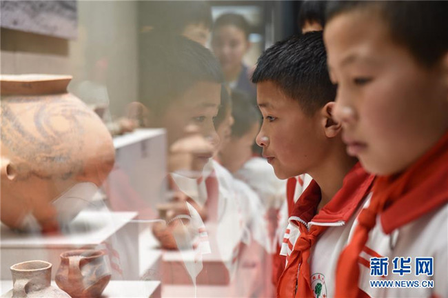 5月31日,學(xué)生們?cè)趯幭墓淘┪镳^參觀(guān)。新華社記者 唐亞蒙 攝