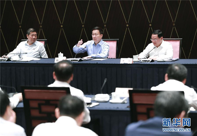 6月3日,中共中央政治局常委、國(guó)務(wù)院副總理、推動(dòng)長(zhǎng)三角一體化發(fā)展領(lǐng)導(dǎo)小組組長(zhǎng)韓正在上海主持召開(kāi)推動(dòng)長(zhǎng)三角一體化發(fā)展領(lǐng)導(dǎo)小組會(huì)議。 新華社記者 龐興雷 攝