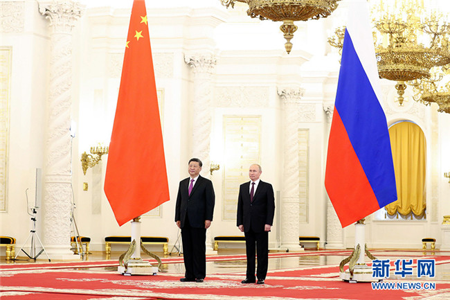 習近平指出,這是我連任國家主席后,首次對俄羅斯進行國事訪問,也是2013年以來第八次到訪俄羅斯。當前,中俄關(guān)系在高水平上持續(xù)、穩(wěn)定、健康發(fā)展,處于歷史最好時期。雙方堅定支持對方維護本國核心利益,政治和戰(zhàn)略互信堅實牢固;積極推進各領(lǐng)域合作,兩國關(guān)系內(nèi)生動力不斷顯現(xiàn),利益交融日益深化;積極參與國際事務(wù)和全球治理,為維護世界和平穩(wěn)定和國際公平正義發(fā)揮了重要建設(shè)性作用。