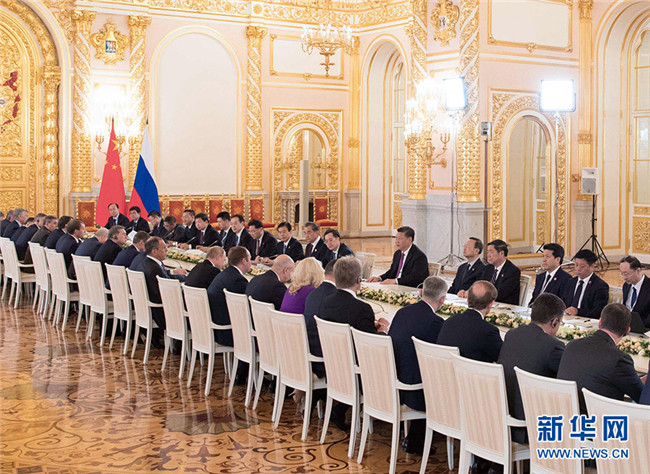 6月5日,國家主席習近平在莫斯科克里姆林宮同俄羅斯總統(tǒng)普京會談。 新華社記者 李學仁 攝