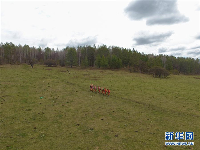 奇乾中隊消防隊員在戶外進(jìn)行綜合訓(xùn)練(5月19日無人機(jī)拍攝)。新華社記者 劉磊 攝