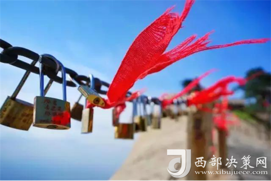 在華山,最美好的是在金鎖關(guān),將你我的名字用一把連心鎖鐫刻在一起,這樣我中有你,你中有我。