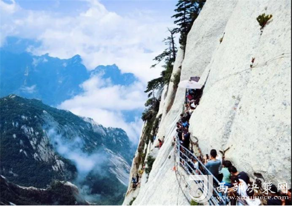 這是一座非常難以攀登的山,公元7世紀(jì)前,幾乎無(wú)人登頂,后來(lái),道士們鑿出了條小路,這就是民間說(shuō)的“自古華山一條路”。