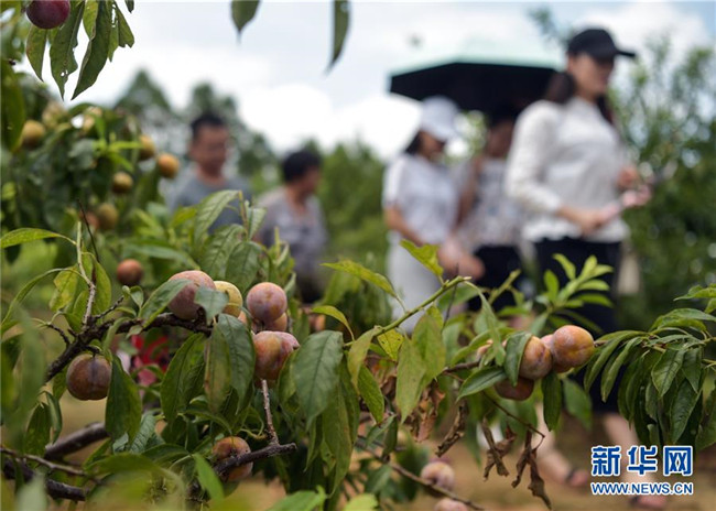 近日,廣西欽州市欽南區(qū)那麗鎮(zhèn)殿艮村種植的三華李進(jìn)入收獲季,吸引游客前來采摘。目前,殿艮村種植的“扶貧李園”共帶動16戶貧困戶實(shí)現(xiàn)增收。 新華社記者 張愛林 攝