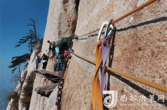 華山最好玩的地方就是切身去感受它的險峻。 親自去爬,一邊是懸崖絕壁一邊是鐵鏈階梯那種心驚膽戰(zhàn)。
