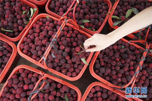 6月15日,在丹寨縣揚(yáng)武鎮(zhèn)老冬村楊梅種植園,果農(nóng)在整理準(zhǔn)備出售的楊梅。新華社發(fā)(黃曉海 攝)