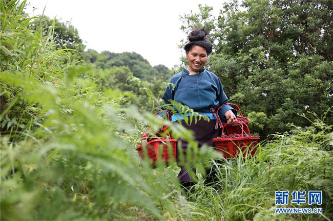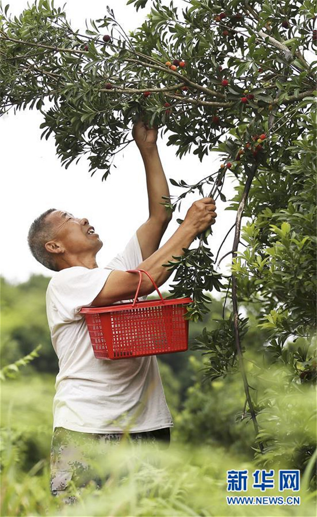 6月15日,在丹寨縣揚(yáng)武鎮(zhèn)老冬村楊梅種植園,果農(nóng)在采摘楊梅。新華社發(fā)(黃曉海 攝)