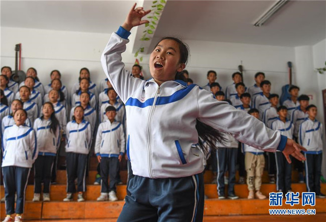 鹽井中學(xué)的學(xué)生們在上音樂課(6月5日攝)。年輕的藏族女教師坐在鋼琴前,手指靈動地彈奏樂曲,兩名學(xué)生拉起弦子伴奏,三十多名學(xué)生站成四排,齊聲合唱。學(xué)?;@球場上數(shù)名身材高大的學(xué)生,正在體育老師的組織下進行激烈的分組對抗,不一會兒,學(xué)生們個個汗流浹背。綜合樓三樓的化學(xué)實驗室內(nèi),身穿白色大褂的學(xué)生,分成若干小組,正在做簡單的化學(xué)實驗。這一幕幕,同時出現(xiàn)在西藏昌都市芒康縣鹽井中學(xué)。新華社記者晉美多吉攝
