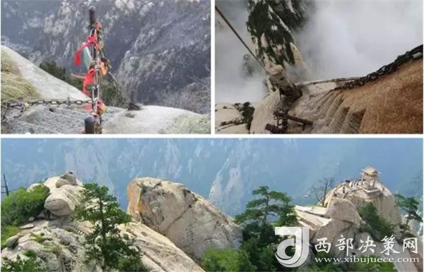 北峰海拔1614米,為華山主峰之一,因位置居北得名。北峰四面懸絕,上冠景云,下通地脈,巍然獨(dú)秀,有若云臺,因此又名云臺峰。唐李白《西岳云臺歌送丹丘子》詩曾寫到:“三峰卻立如欲摧,翠崖丹谷高掌。白帝金精運(yùn)元?dú)?,石作蓮花云作臺。”