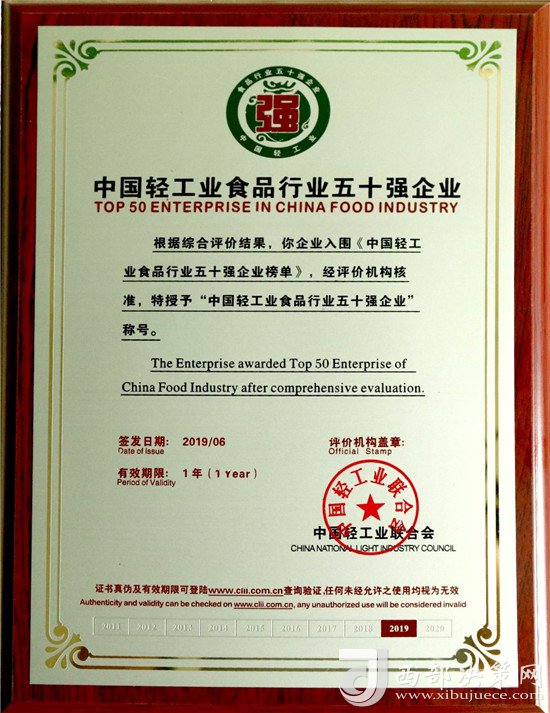 近日,由中國輕工業(yè)聯(lián)合會主辦,主題為“強(qiáng)化科技創(chuàng)新,服務(wù)美好生活”的“中國輕工業(yè)百強(qiáng)企業(yè)高峰論壇”在北京召開。會上,中國輕工業(yè)聯(lián)合會公布了2018年度中國輕工業(yè)食品行業(yè)五十強(qiáng)企業(yè),西鳳股份公司憑借良好的發(fā)展業(yè)績、市場口碑、行業(yè)競爭力及日益增強(qiáng)的品牌影響力,被中國輕工業(yè)聯(lián)合會授予“中國輕工業(yè)食品行業(yè)五十強(qiáng)企業(yè)”榮譽(yù)稱號,并受到表彰獎勵(lì)。