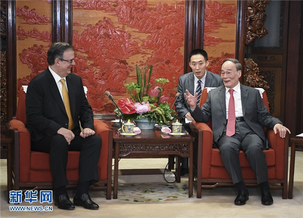 國家副主席王岐山1日在中南海會見墨西哥外長埃布拉德。