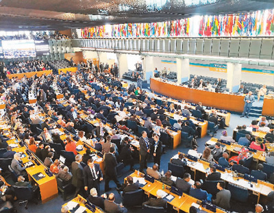 6月23日在意大利羅馬召開的聯(lián)合國(guó)糧食及農(nóng)業(yè)組織大會(huì)第41屆會(huì)議會(huì)場(chǎng)。新華社記者 陳占杰攝
