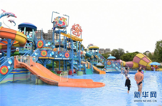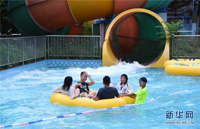 7月6日,市民在北京歡樂水魔方嬉水樂園游玩。新華社發(fā)(任超 攝)