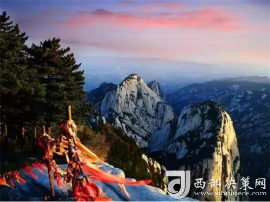 華山!認(rèn)祖歸宗,五千年古國籍華山而得中華華夏國名。東據(jù)函潼,放眼秦晉豫扼守大西北進(jìn)出中原險關(guān);西望長安,翹首十三朝古都看秦漢風(fēng)流盛唐氣韻;南牽秦嶺,分中國地理氣候環(huán)境南北界限于天然;北瞰黃渭,襟水從天上飛來浪淘出千古黃土文明。煙嵐浸潤,千山競秀千秋畫,群峰聳峙,萬壑雄風(fēng)萬古音。一幅華山畫圖,點(diǎn)綴神州幾分鮮紅,幾分翠綠,幾分蒼勁,幾分神圣!