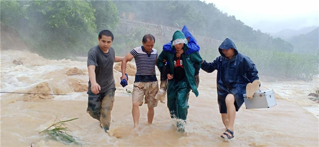 15時左右,他們到達內(nèi)興屯,為覃愛芝簡單處理傷口后,覃國富把自己的雨衣披到覃愛芝身上,和另外5名黨員干部輪流背著覃愛芝向外轉(zhuǎn)移。