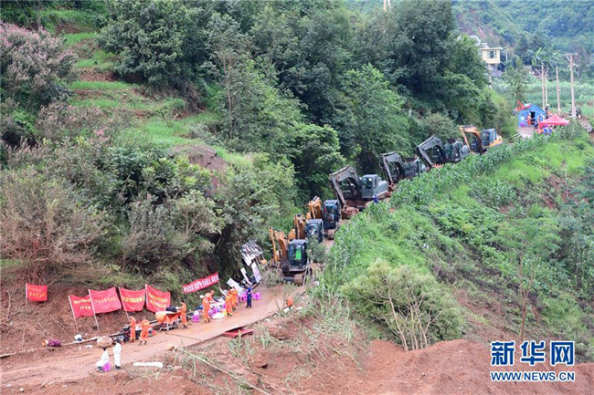7月24日,救援人員在山體滑坡現(xiàn)場開展救援。 新華社記者 陶亮 攝