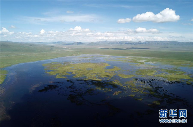 7月29日無人機(jī)拍攝的尕海湖湖畔濕地。 新華社記者 馬寧 攝