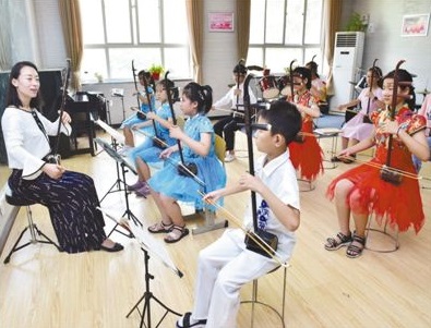 在河北省新樂市青少年活動中心,孩子們參加二胡興趣班。影像中國