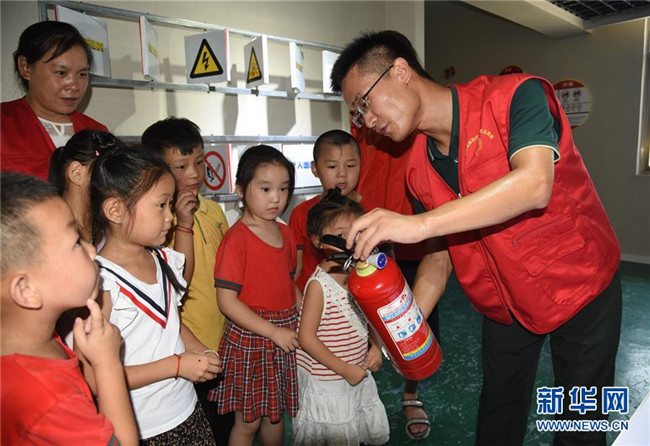 當(dāng)日,山東省汶上縣劉樓鎮(zhèn)舉行兒童安全教育活動(dòng),組織小朋友到安全教育體驗(yàn)基地學(xué)習(xí),加強(qiáng)安全意識(shí),平安度過(guò)暑假。 新華社記者 任鵬飛 攝