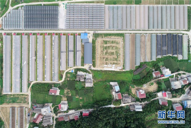 這是安康市漢濱區(qū)建民街道忠誠村的富硒農(nóng)業(yè)園區(qū)(8月8日無人機拍攝)。新華社記者 邵瑞 攝