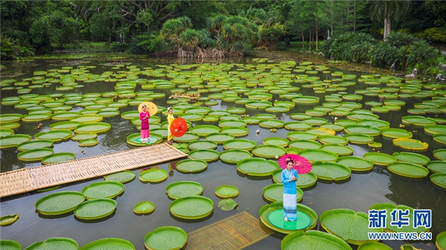 當(dāng)下王蓮已進(jìn)入最佳觀賞期,西雙版納熱帶植物園舉辦了以“品眾蓮之韻,駕一葉之舟”為主題的“賞蓮月”系列活動(dòng),其中最受小朋友歡迎的“我的王蓮我的船”活動(dòng)也面向公眾開放,讓小朋友與王蓮近距離接觸。新華網(wǎng)發(fā)(趙熠 攝)