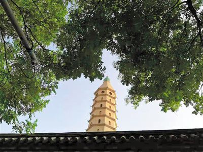 北塔是一座方形九層十一級(jí)樓閣式磚塔,海寶塔建筑風(fēng)格獨(dú)特,方形的塔身,四面的券門(mén),眾多的棱角,四角的尖頂,為中國(guó)古塔所罕見(jiàn),被視為中國(guó)古代建筑的杰作。