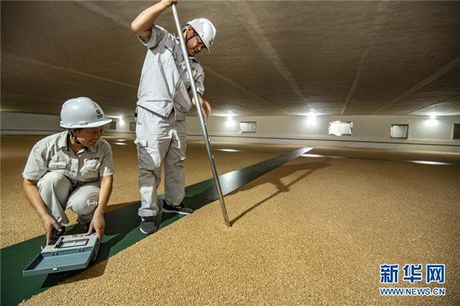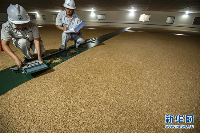中央儲備糧襄陽直屬庫有限公司是中儲糧集團湖北分公司設(shè)在鄂西北的中心庫,中央儲備糧及政策性糧儲存量位居湖北分公司前列。 近年來,襄陽直屬庫應(yīng)用了電子測溫、環(huán)流熏蒸、機械通風(fēng)、谷物冷卻為主的“四合一”科學(xué)儲糧技術(shù),有效解決了儲糧蟲害和壞糧問題,確保糧食的質(zhì)量與安全。 新華社記者 杜華舉 攝