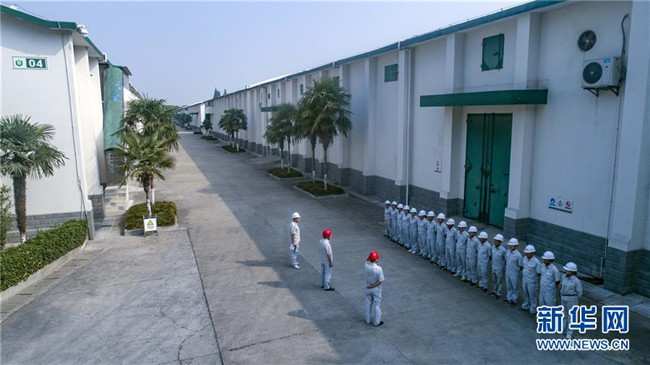 8月26日,中儲糧襄陽直屬庫職工在召開班前會(無人機拍攝)。