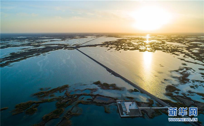 從2000年起,隨著向塔里木河下游生態(tài)輸水的持續(xù)實(shí)施,臺特瑪湖重現(xiàn)生機(jī)(5月9日無人機(jī)拍攝)。 新華社發(fā)(肖玉磊 攝)