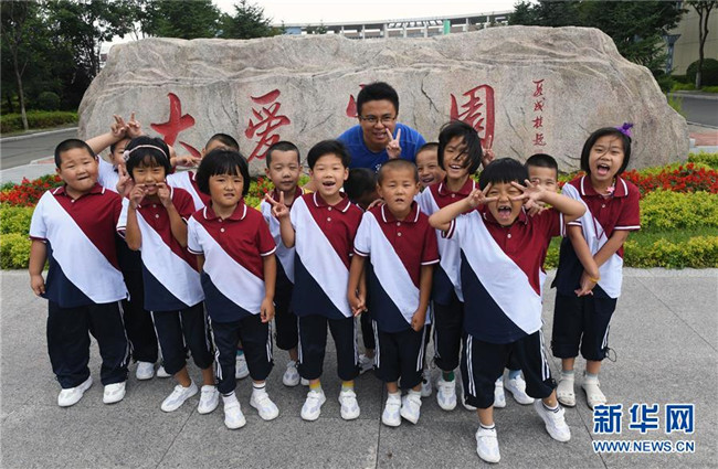 8月29日,一年級新生班同學(xué)合影。 新華社記者 林宏 攝