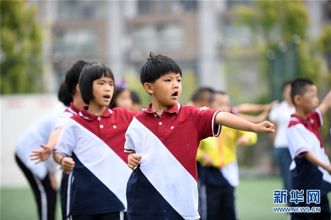 8月29日,一年級新生在做課間操。 新華社記者 林宏 攝