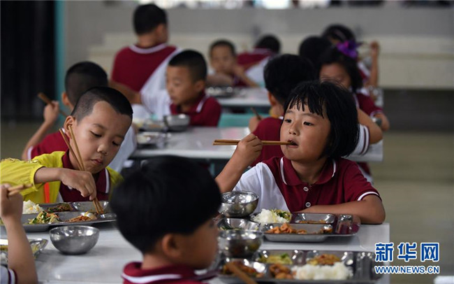 8月29日,一年級新生在食堂用餐。 新華社記者 林宏 攝