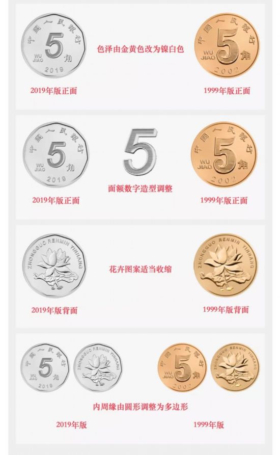 硬幣數(shù)字造型調(diào)整 5角硬幣由黃變白