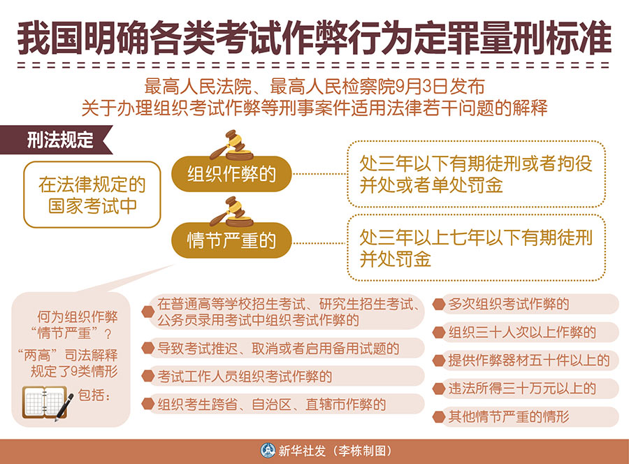 原標題:明確定罪量刑標準 加大懲治力度——“兩高”發(fā)布考試作弊刑事案件司法解釋
