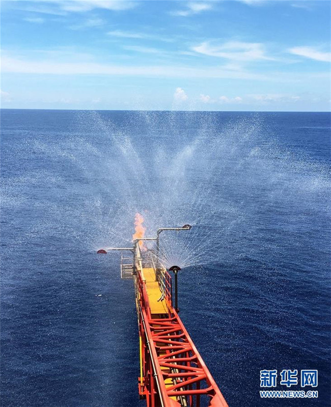 2017年7月9日拍攝的南海天然氣水合物試采工程現(xiàn)場(chǎng)。當(dāng)日,我國(guó)海域天然氣水合物(可燃冰)首次試開采取得圓滿成功。 新華社發(fā)(朱夏 攝)