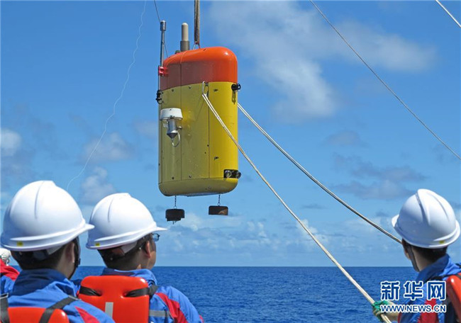 2016年7月1日,在馬里亞納海溝附近海域,“海斗”準(zhǔn)備下潛進(jìn)行科學(xué)考察。我國(guó)自主研制的“海斗”號(hào)無(wú)人潛水器在首次綜合性萬(wàn)米深淵科考中成功進(jìn)行了一次八千米級(jí)、兩次九千米級(jí)和兩次萬(wàn)米級(jí)下潛應(yīng)用,最大潛深達(dá)10767米,創(chuàng)造了我國(guó)無(wú)人潛水器的最大下潛及作業(yè)深度紀(jì)錄,使我國(guó)成為繼日、美兩國(guó)之后第三個(gè)擁有研制萬(wàn)米級(jí)無(wú)人潛水器能力的國(guó)家。 新華社發(fā)