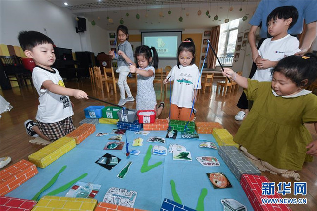9月4日,孩子們通過(guò)趣味游戲?qū)W習(xí)垃圾分類的知識(shí)。
