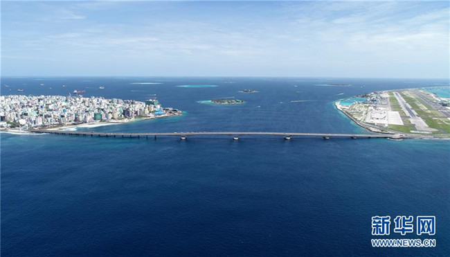 這是8月30日在馬爾代夫航拍的連接首都馬累和機(jī)場島的中馬友誼大橋。新華社發(fā)(王明亮攝)
