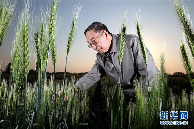 李振聲院士在中國科學院遺傳與發(fā)育生物學研究所農業(yè)資源研究中心南皮生態(tài)農業(yè)試驗站(中科院南皮站)的試驗田里(2014年5月5日攝)。新華社記者 金立旺 攝
