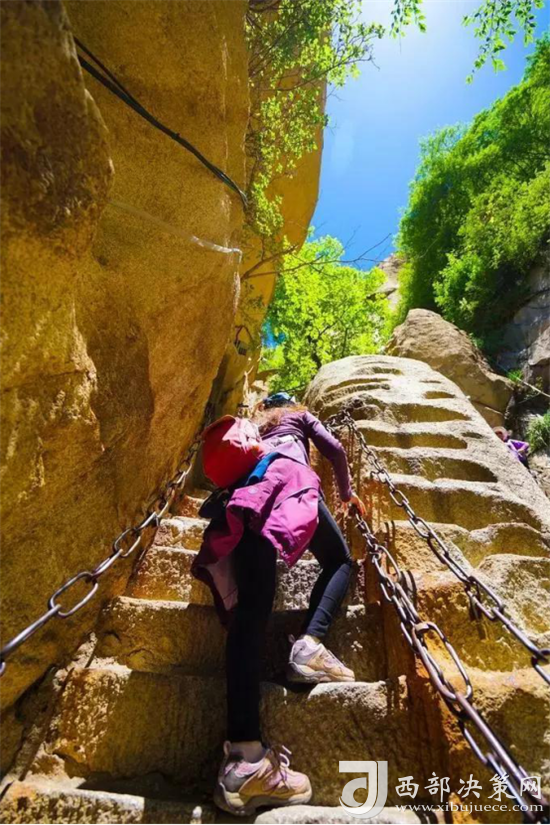“自古華山一條路”就是當(dāng)?shù)厝怂f的“華山峪”登山道,包括了自古以來華山唯一登山道上的沿途各景點,連起來就是通常所說的“自古華山一條路”。登華山最大的樂趣即為登山本身,一邊克服種種山路的艱險,一邊移步換景觀賞沿途風(fēng)光,所以這條經(jīng)典的登山路線至今仍然是登華山的最佳選擇。