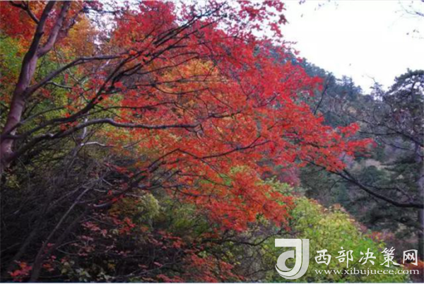 從山腳下的郁郁蔥蔥到山頂上的紅黃相間,華山上的每一個(gè)臺(tái)階都浸染在了紅葉的絢爛中。