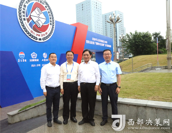 貴州茅臺酒廠(集團(tuán))有限責(zé)任公司黨委書記、董事長李保芳(左二)山西杏花村汾酒集團(tuán)有限責(zé)任公司黨委書記、董事長李秋喜(右二)陜西西鳳酒廠集團(tuán)有限公司黨委書記、董事長張正(右一)瀘州老窖股份有限公司黨委書記、董事長劉淼(左一)合影