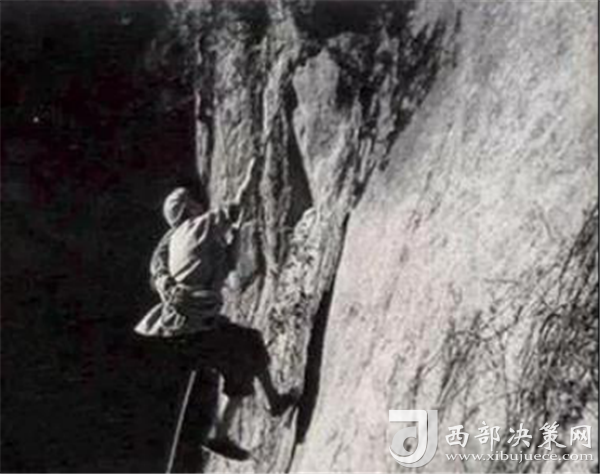 圖為《智取華山》電影中攀爬華山峭壁片段
