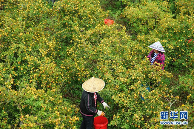 貴州省龍里縣谷腳鎮(zhèn)的農(nóng)民在采摘刺梨鮮果(2018年8月22日攝)。 近年來,貴州省圍繞產(chǎn)業(yè)選擇、培訓農(nóng)民、技術(shù)服務(wù)、資金籌措、組織方式、產(chǎn)銷對接、利益聯(lián)結(jié)、基層黨建等“八要素”,通過“減、融、服”創(chuàng)新推進農(nóng)村產(chǎn)業(yè)結(jié)構(gòu)調(diào)整,既帶動了農(nóng)戶增收,也推動了特色產(chǎn)業(yè)做大做強。 新華社記者 楊文斌 攝