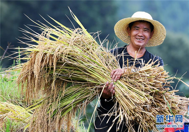 9月17日,貴州省榕江縣計劃鄉(xiāng)計劃村陽開苗寨的村民在收割水稻。 近年來,貴州省圍繞產(chǎn)業(yè)選擇、培訓農(nóng)民、技術(shù)服務(wù)、資金籌措、組織方式、產(chǎn)銷對接、利益聯(lián)結(jié)、基層黨建等“八要素”,通過“減、融、服”創(chuàng)新推進農(nóng)村產(chǎn)業(yè)結(jié)構(gòu)調(diào)整,既帶動了農(nóng)戶增收,也推動了特色產(chǎn)業(yè)做大做強。 新華社記者 楊文斌 攝