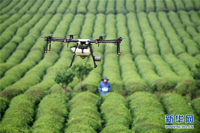 農(nóng)技人員操作植保無人機在貴州省安順市西秀區(qū)明英茶生產(chǎn)基地作業(yè)(5月23日攝)。 近年來,貴州省圍繞產(chǎn)業(yè)選擇、培訓農(nóng)民、技術(shù)服務(wù)、資金籌措、組織方式、產(chǎn)銷對接、利益聯(lián)結(jié)、基層黨建等“八要素”,通過“減、融、服”創(chuàng)新推進農(nóng)村產(chǎn)業(yè)結(jié)構(gòu)調(diào)整,既帶動了農(nóng)戶增收,也推動了特色產(chǎn)業(yè)做大做強。 新華社記者 楊文斌 攝