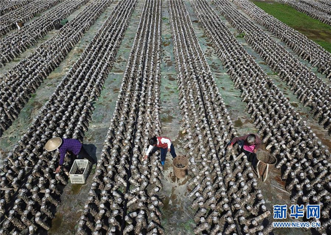 農(nóng)民在貴州省銅仁市萬山區(qū)敖寨鄉(xiāng)中華山村的食用菌基地里采摘木耳(2018年10月29日無人機拍攝)。 近年來,貴州省圍繞產(chǎn)業(yè)選擇、培訓農(nóng)民、技術(shù)服務(wù)、資金籌措、組織方式、產(chǎn)銷對接、利益聯(lián)結(jié)、基層黨建等“八要素”,通過“減、融、服”創(chuàng)新推進農(nóng)村產(chǎn)業(yè)結(jié)構(gòu)調(diào)整,既帶動了農(nóng)戶增收,也推動了特色產(chǎn)業(yè)做大做強。 新華社記者 楊文斌 攝